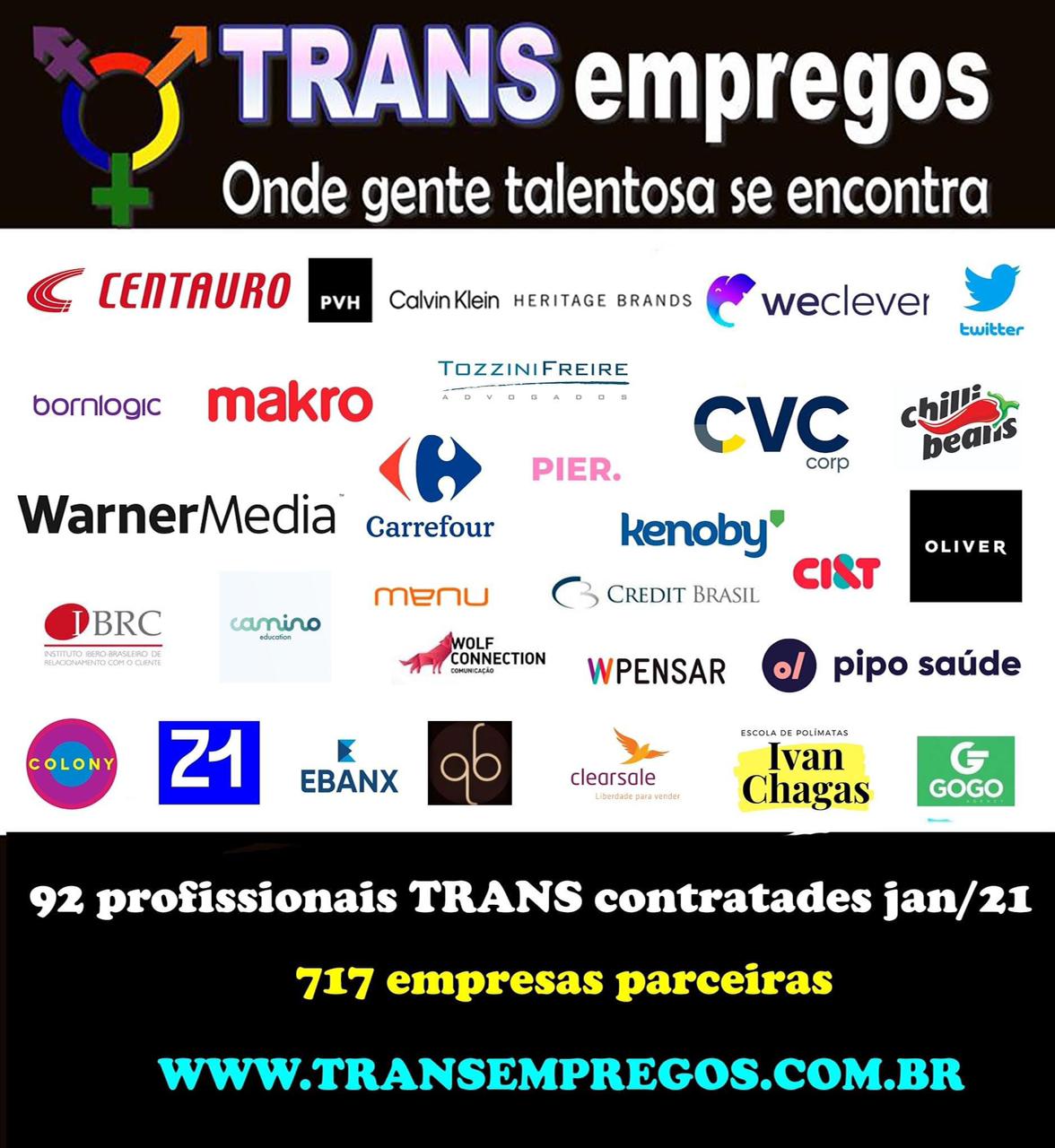 92 profissionais TRANS contratades em janeiro de 2021. Parabéns a estas empresas que abriram seus filtros de contratação e seleção e deram oportunidades a estes talentos reais.