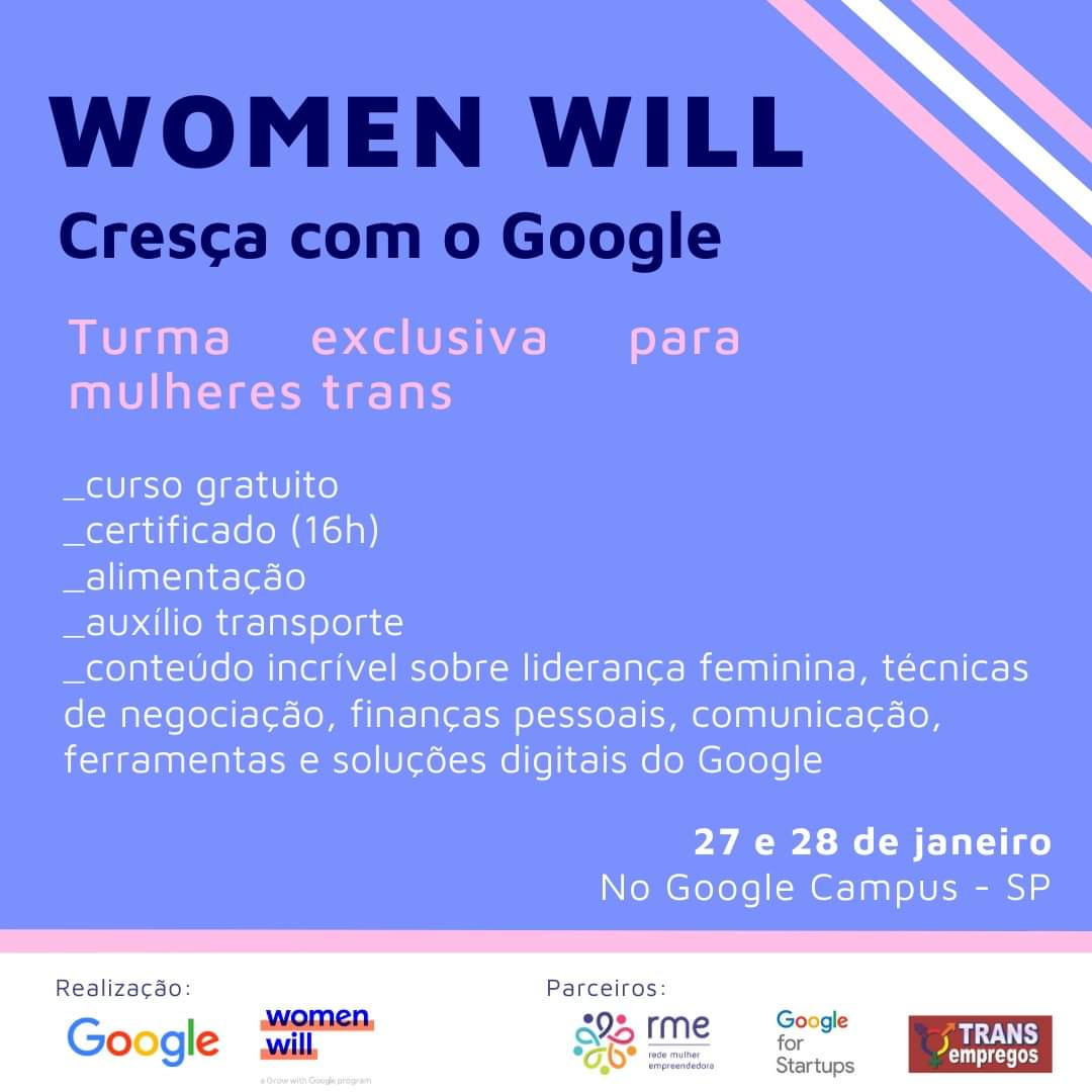 GOOGLE e RME em parceria exclusiva com TRANSEMPREGOS... abre a 2ª turma especialmente para MULHERES…
