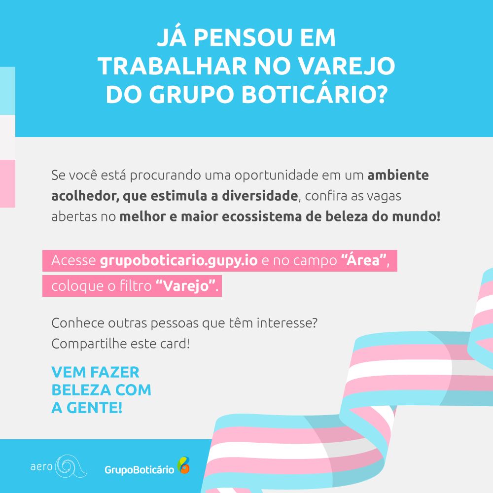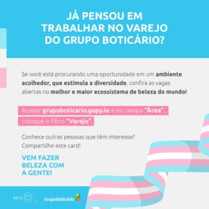 Grupo Boticário em parceria com a TransEmpregos disponibiliza vagas no Brasil todo