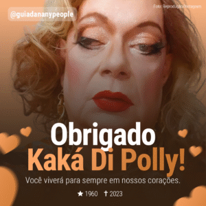 Obrigado por tudo, Kaká di Polly! 💛 Uma das maiores drags da história brasileira faleceu ontem (23), em São Paulo.