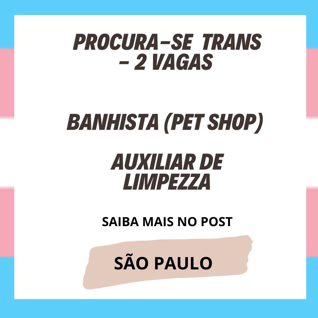 TRANSEMPREGOS DIVULGA: 2 vagas em São Paulo – Marque as pessoas trans que precisam de oportunidade
