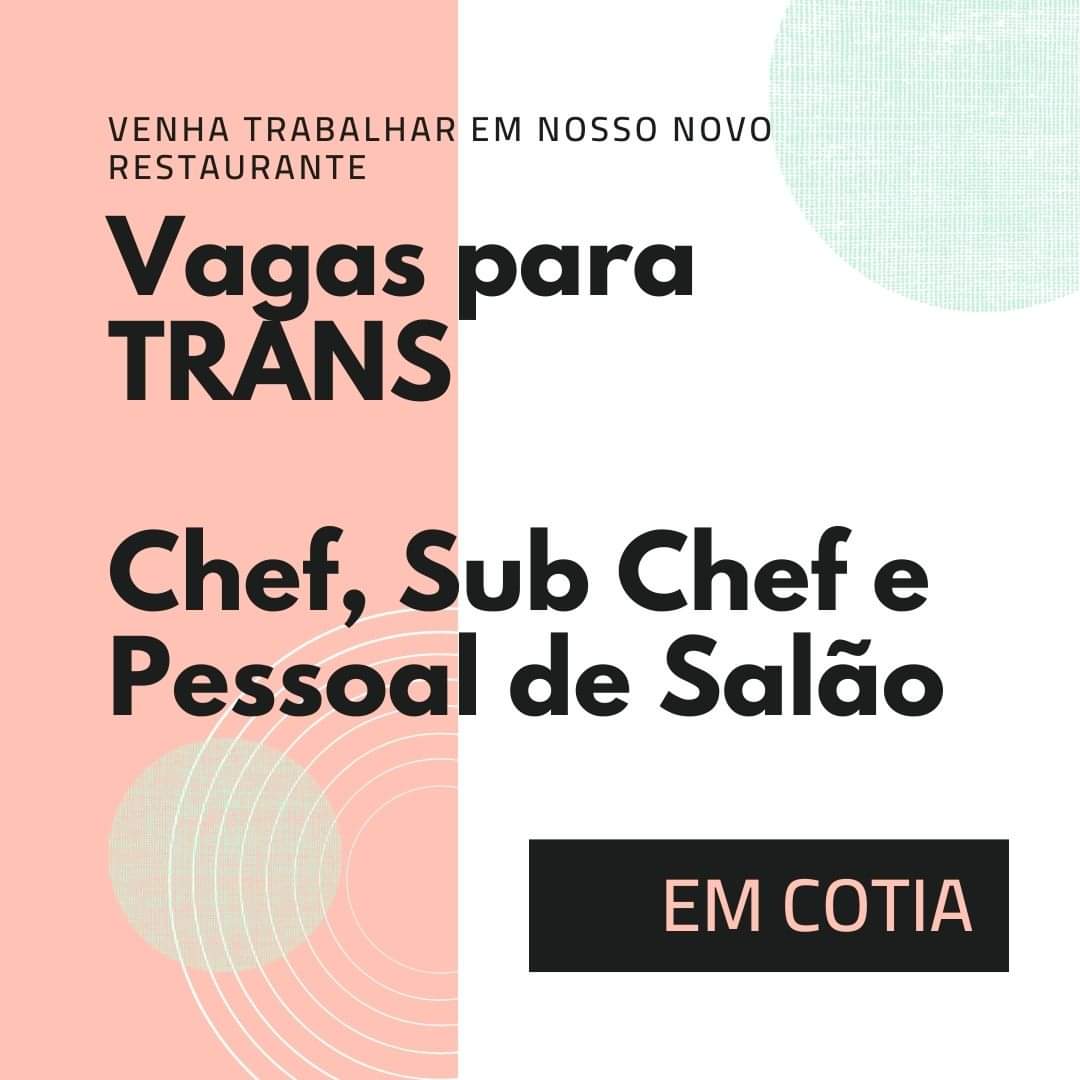 Restaurante ITALIANO, novo, em COTIA, busca profissionais TRANS para vagas de Chef, Sub Chef e Serviços de Salão.