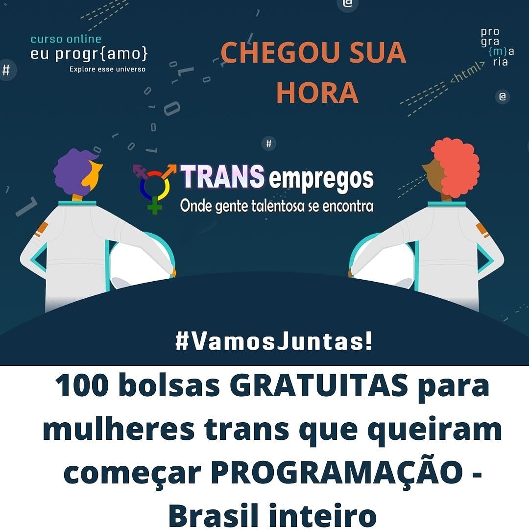 100 BOLSAS de estudo para pessoas TRANS que queiram aprendem PROGRAMAÇÃO ( Brasil inteiro)